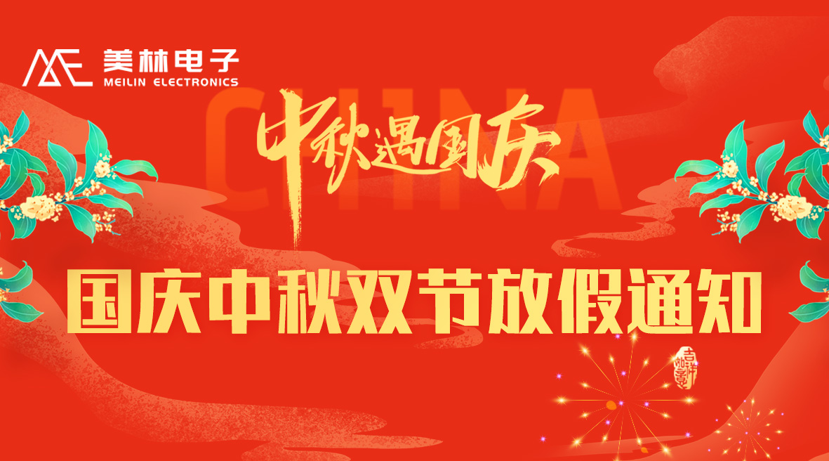 尊敬的各位客戶、各合作伙伴: 團(tuán)圓慶華誕,雙節(jié)共歡騰。國慶中秋雙節(jié)將至,根據(jù)國家有關(guān)規(guī)定結(jié)合公司實(shí)際,放假安排如下:10月1日至10月8日放假休息,共8天,10月9日(星期四)正常上班。 感謝您一如既往的信任和支持。美林電子祝您財源廣進(jìn),團(tuán)圓喜樂,闔家幸福,萬事如意!